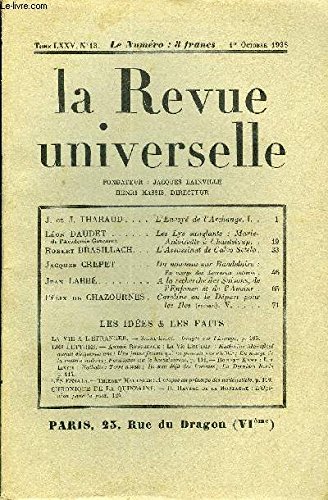 LA REVUE UNIVERSELLE TOME 75 N°13 - J. et J. THARAUD. L'Envoyé de VArchange. I. Léon DAUDET de l’Académie Concourt. Les Lys sanglants : Marie-Antoinette à Chanteloup. Robert BRASILLACH. L’Assassinat de Calvo Sotelo .Jacques CREPET. PDF Kindle